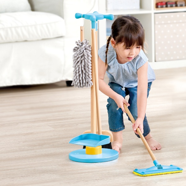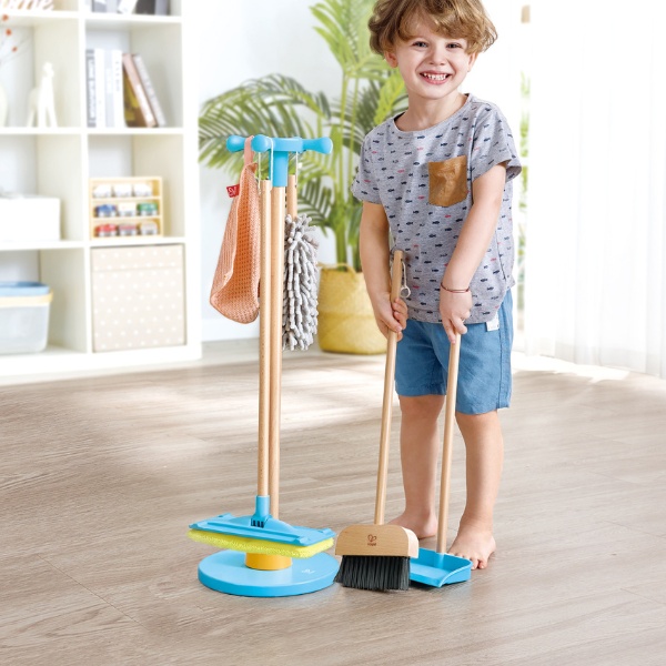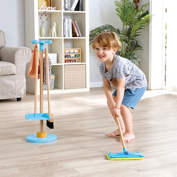 Учите детей поддерживать чистоту с этим набором для уборки! В комплект входят метла, швабра, совок, пыльца, полотенце и даже подставка для хранения. У вас будет все, что нужно, чтобы поддерживать порядок в доме.