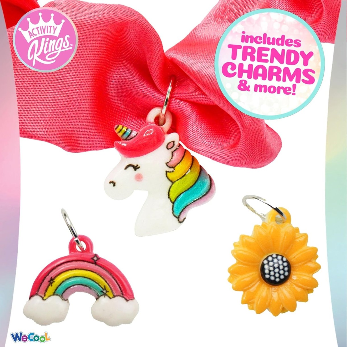Дети могут создать свои собственные, единственные в своем роде резинки для волос всего за несколько простых шагов! Каждую из 13 резинок можно адаптировать под индивидуальный стиль каждого ребенка. В комплект входят три подвески-сюрприза, которые можно добавить, чтобы сделать каждую резинку по-настоящему уникальной!