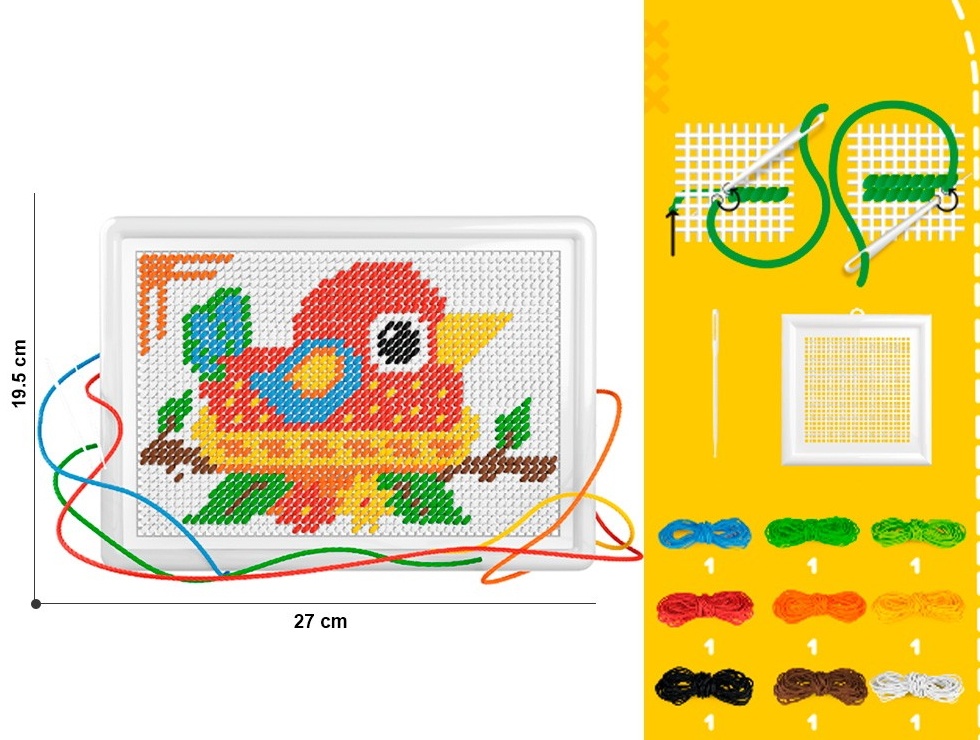 Комплектацияпластиковая рамка - 1шт., иглы для вышивания - 2 шт., цветные нити согласно схеме