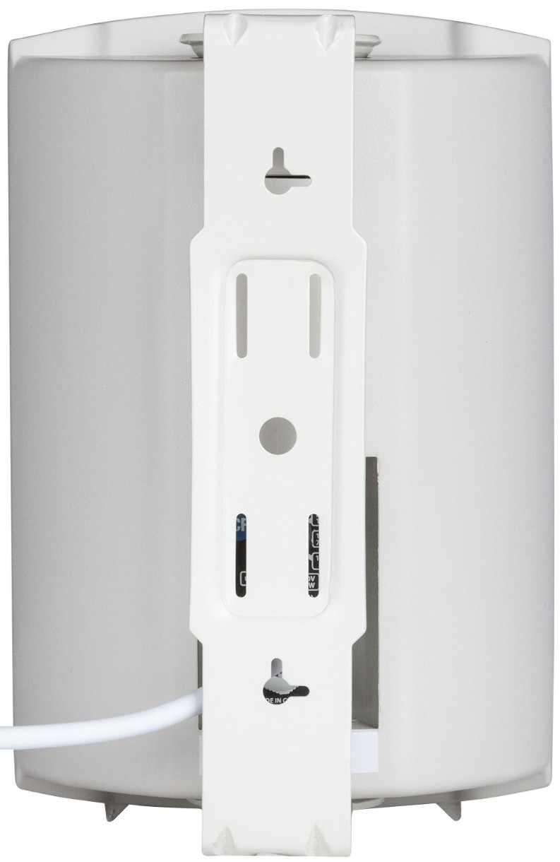 Подключения к линии громкоговорителей производятся с использованием двужильного кабеля, выходящего с задней стороны громкоговорителя. Корпус включает защитную перфорированную решетку и аксессуар для настенного монтажа.
