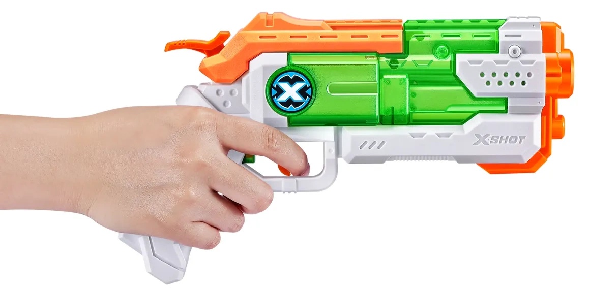 Бак вмещает 170 мл воды, а дальность выстрела — 8 метров. Технология Fast-Fill позволяет зарядить пистолет за одну секунду. Нужно просто отвести затвор и поместить игрушку в воду. Дети будут в восторге от мощного водного пистолета и захотят купить еще один, чтобы устраивать перестрелки с друзьями. Подойдет детям от 5 лет.