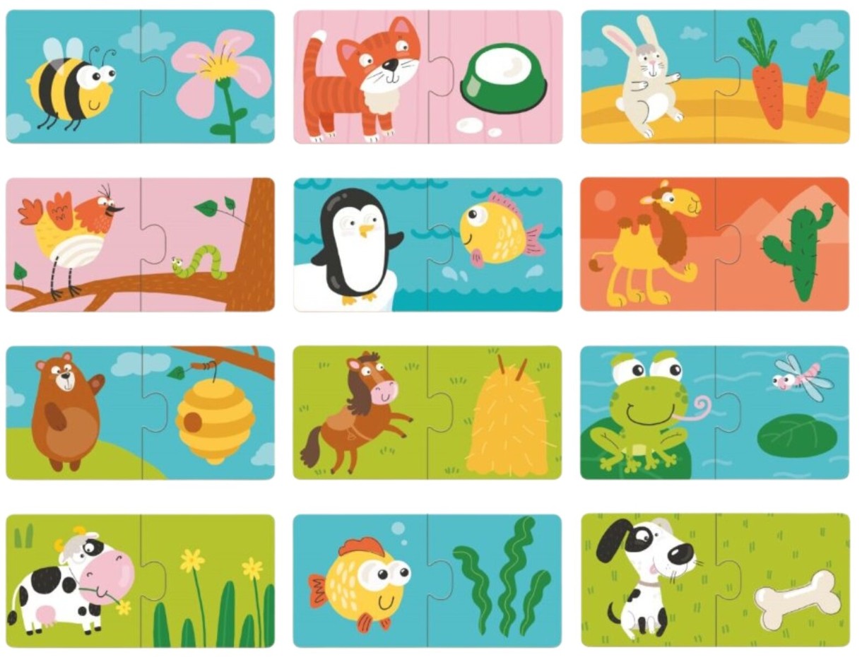 - В наборе: 12 пазлов (по 2 элемента в каждом).