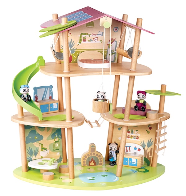 Набор Green Planet Explorers, изготовленный из экологически чистого бамбука, включает в себя множество предметов, таких как камин, гамаки, веревочная лестница и даже подъемник для инвалидных колясок.