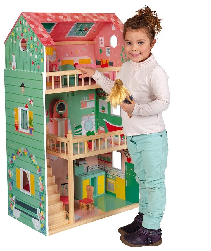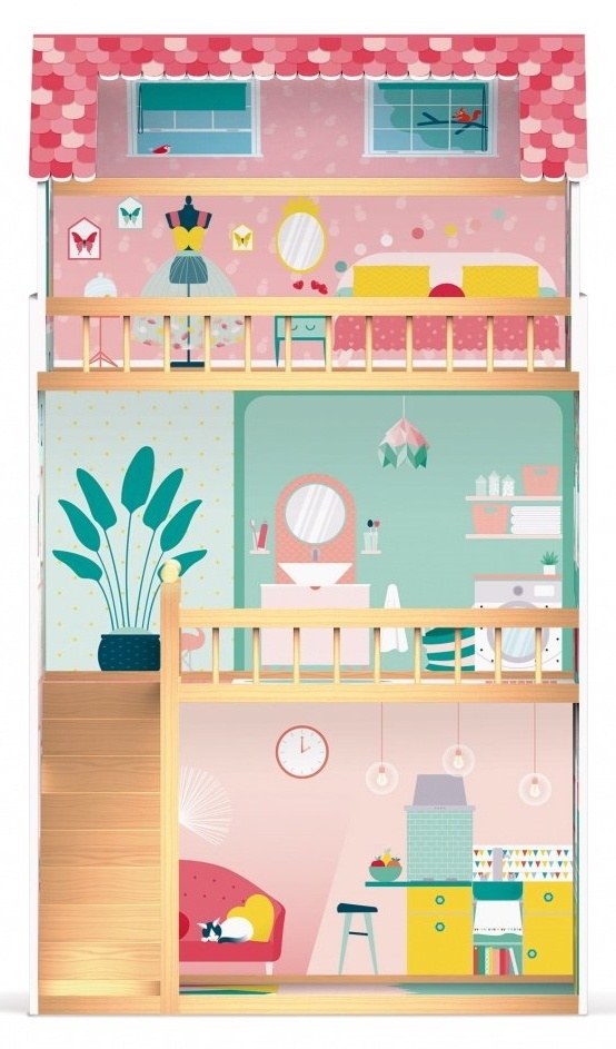 Кукольный домик с 12 аксессуарами для спальни, кухни и ванной комнаты.