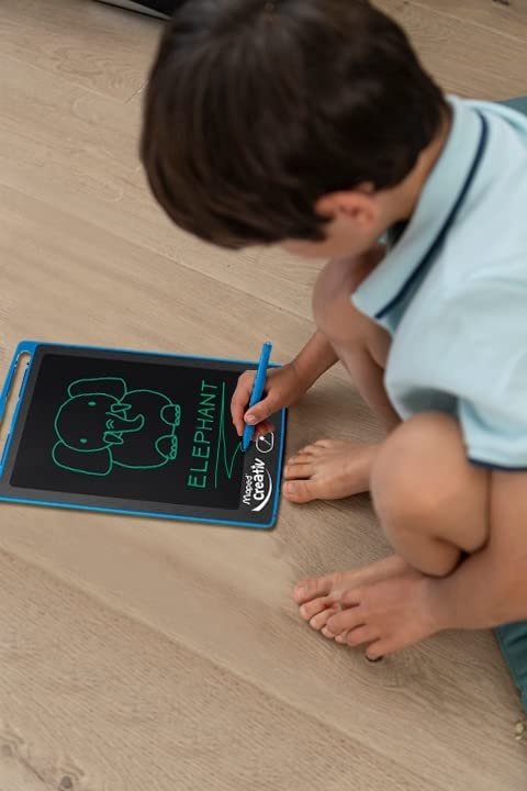 ЖК-планшет с подсветкой экрана для творческого письма и рисования. Используйте стилус, чтобы писать на экране, затем волшебство, экран стирается нажатием кнопки. Экран можно заблокировать, чтобы предотвратить случайное стирание. Экран 8,5″. В комплекте стилус и батарея CR2016).