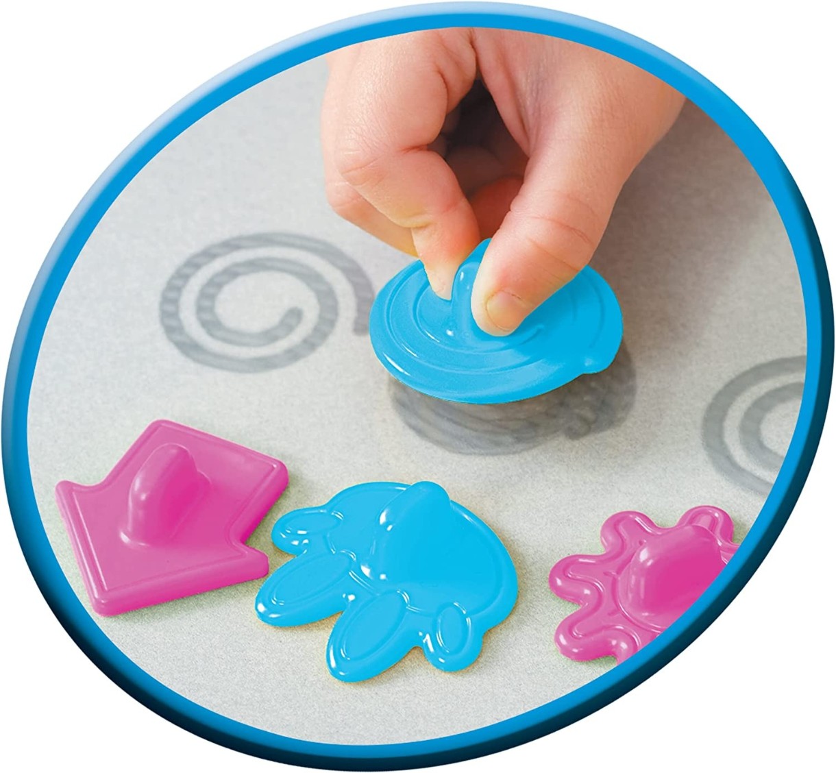 Веселье никогда не заканчивается, потому что, если у нас закончится место для рисования, просто сотрите его, и мы сможем начать все сначала. Большая поверхность для рисования с диагональю 34 см позволит детям реализовать свои художественные фантазии. В набор входят 4 магнитных штампа, которые оставляют на доске красивые фигуры, такие как: домик, звезда, лапа или спираль. Также к доске прилагается специальная фиолетово-синяя магнитная ручка, которой можно рисовать на экране. Ручка крепится к доске шнурком, чтобы не потеряться, но в то же время она достаточно длинная, чтобы не сковывать движения при рисовании.