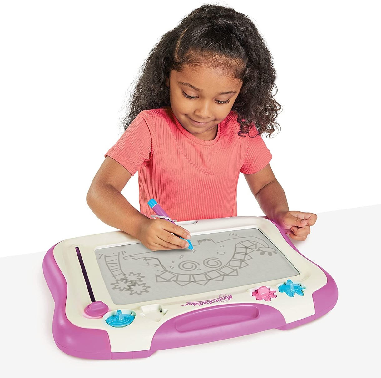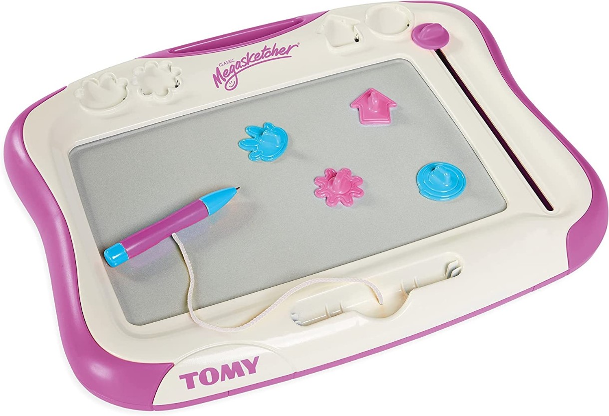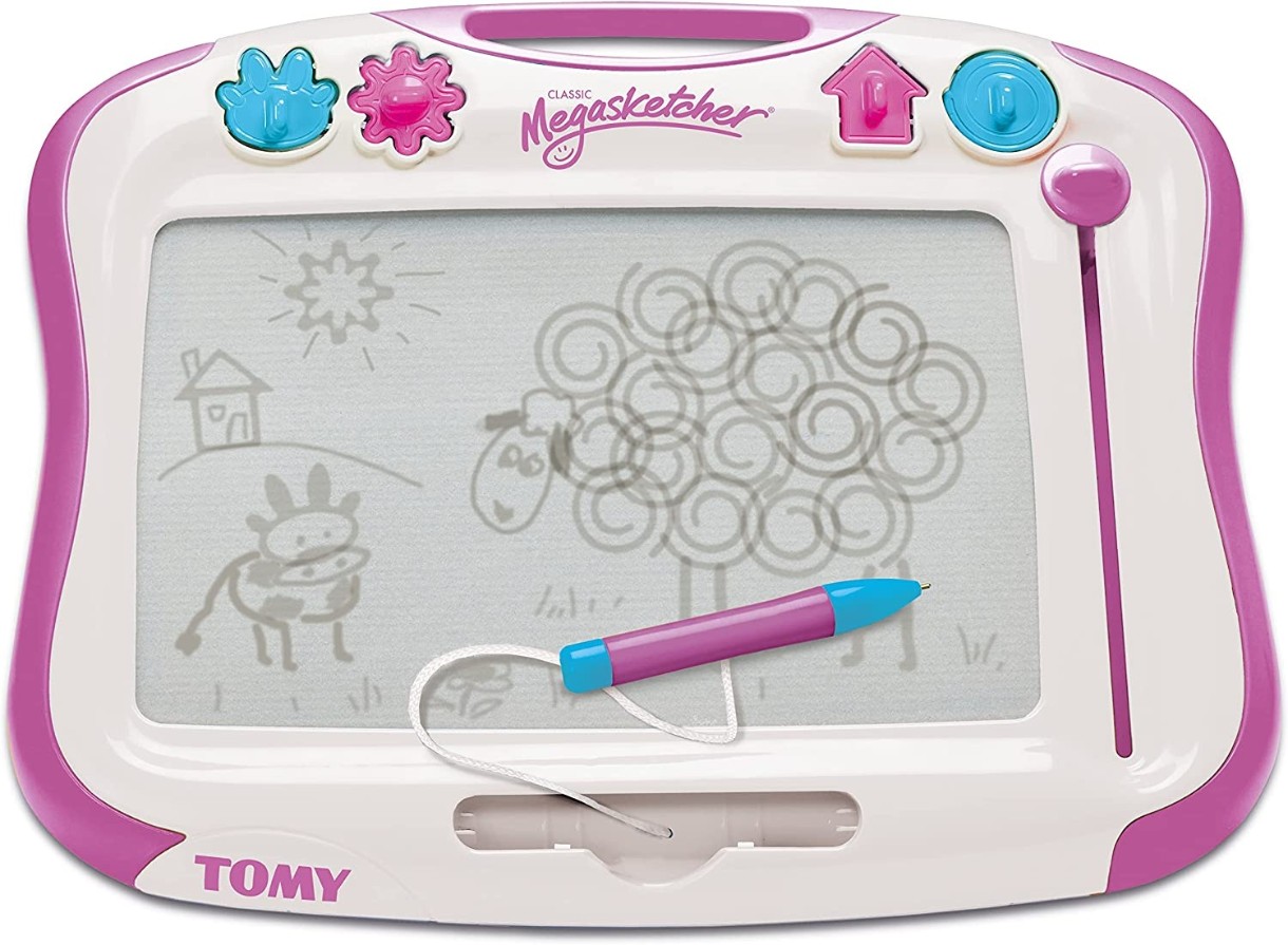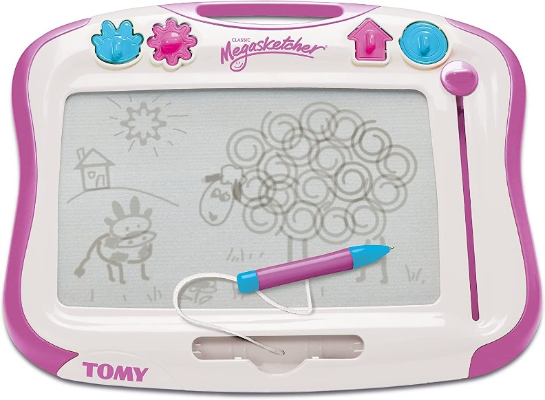 Магнитный экран износа от TOMY оснащен инновационной магнитной тканью. При рисовании на ней ручкой она оставляет непрерывную линию, чего невозможно добиться на классических чертежных досках. Megasketcher от TOMY обязательно понравится всем маленьким художникам, которые любят рисовать часами, и станет неотъемлемым элементом веселья в школе.