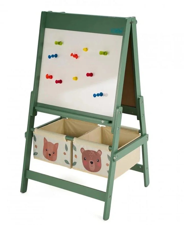 - Двусторонняя поверхность: белая сторона для рисования с помощью бумаги (включена в комплект) и черная сторона для рисования или письма мелом.