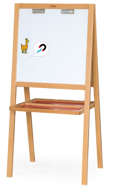 Мольберт двусторонний: с одной стороны черный и белый магнитный – с другой.