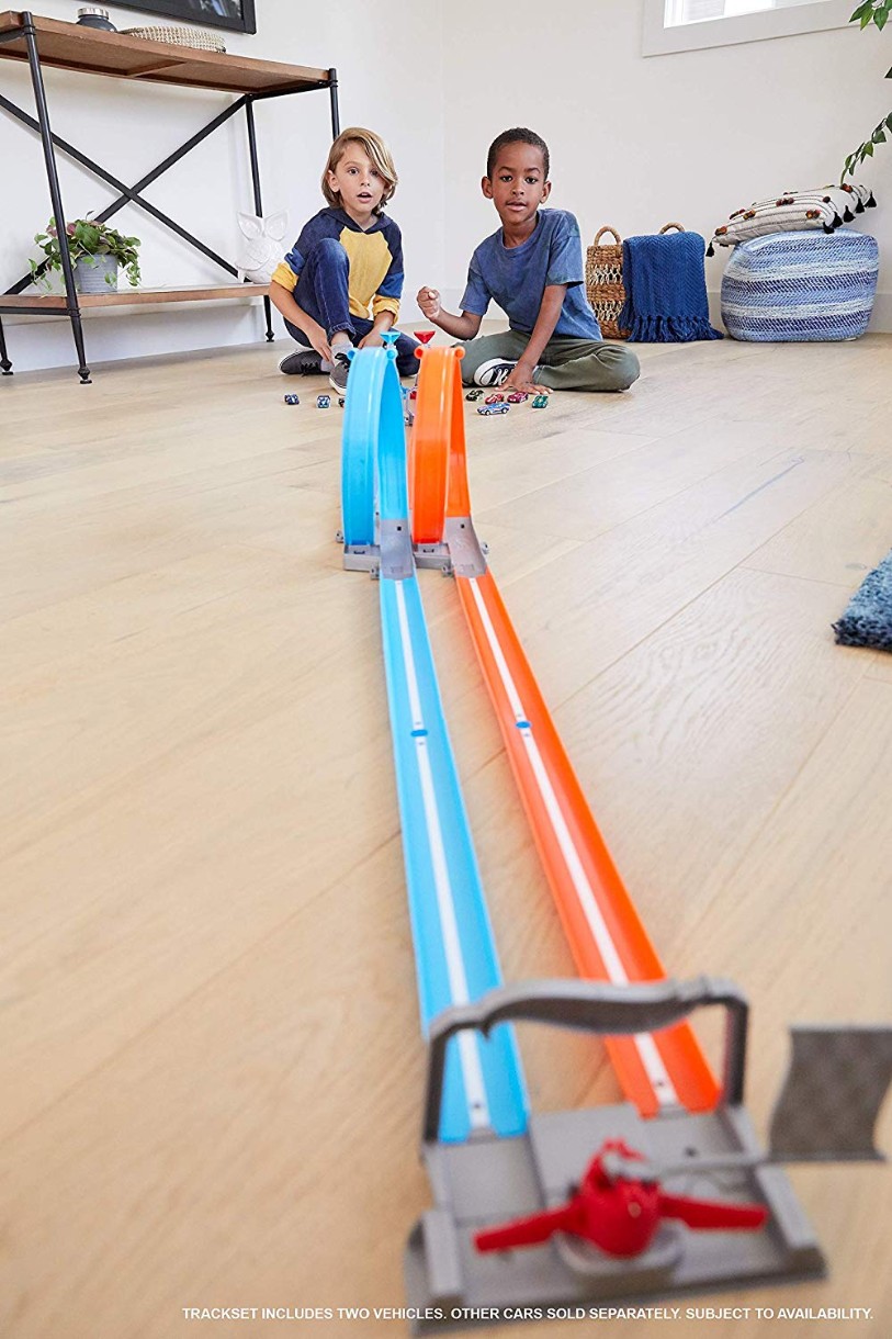 Незабываемые приключения уже ждут тебя вместе с захватывающим треком для гонок Hot Wheels! Выбери, как ты хочешь поиграть: попытаться проехать вдоль длинного трека Hot Wheels с двумя петлями без всякого ускорителя или пригласить друзей и устроить крутые соревнования на параллельных трассах. Трек можно собирать по-разному, кроме того он легко складывается и компактно собирается.
