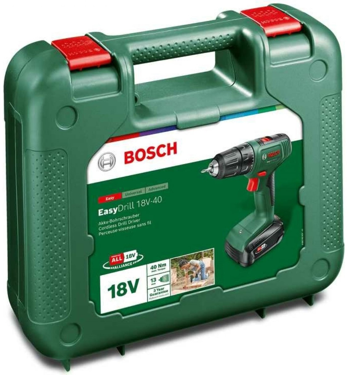 Аккумуляторная дрель-шуруповерт Bosch Easydrill 18V-40 06039D8004 предназначена для закручивания и откручивания винтов, а также для сверления в древесине, металле, керамике и пластмассе.