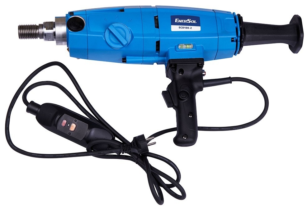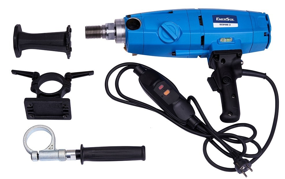 Дрель алмазного сверления EnerSol предназначена для изготовления отверствий в жележобетоне, камне и асфальтном покрытии. Плавный пуск исключает возможность утраты контроля. Возможность подачи воды уменшает количество пыли и охлаждает рабочую поверхность коронки. УЗО защитит оператора от поражения электрическим током. Механическая предохранительная муфта обезопасит оператора и двигатель в случае заклинивания коронки. Регулировка частоты оборотов позволит работать с разными диаметрами коронок.
