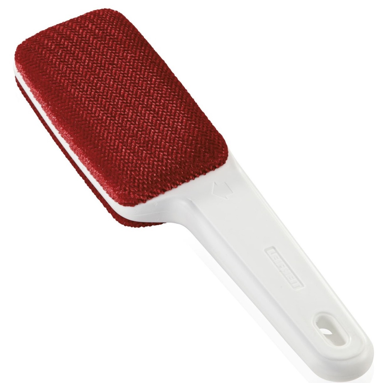 Двухсторонняя щетка, можно держать в правой и левой руке, собирает и удаляет пыль, пух, волосы со всех типов тканей. Чистит при движении в направлении стрелок на щетке. Самоочищается на любом куске ткани в направлении движения противоположном от стрелки.