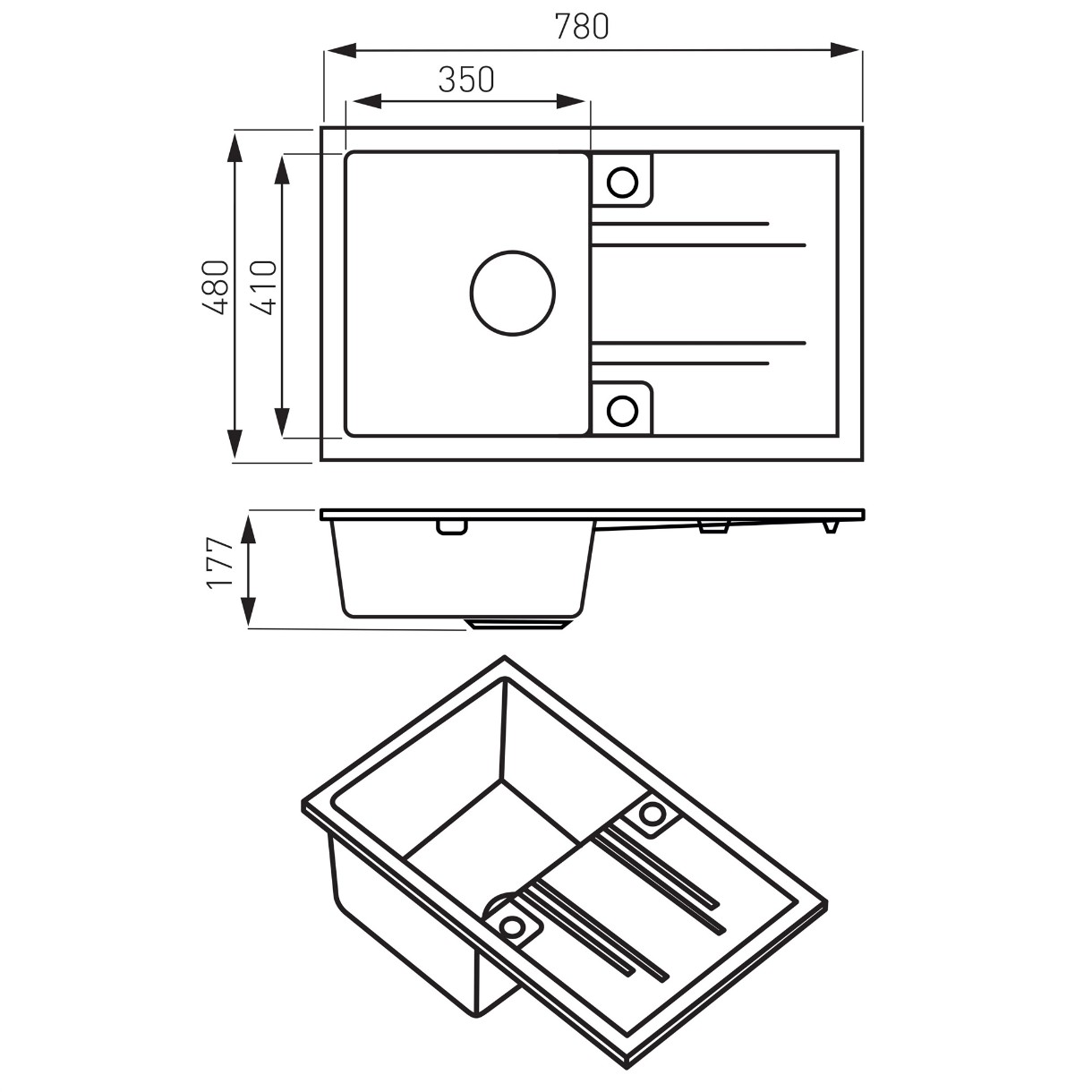 Размер мойки780x480 мм