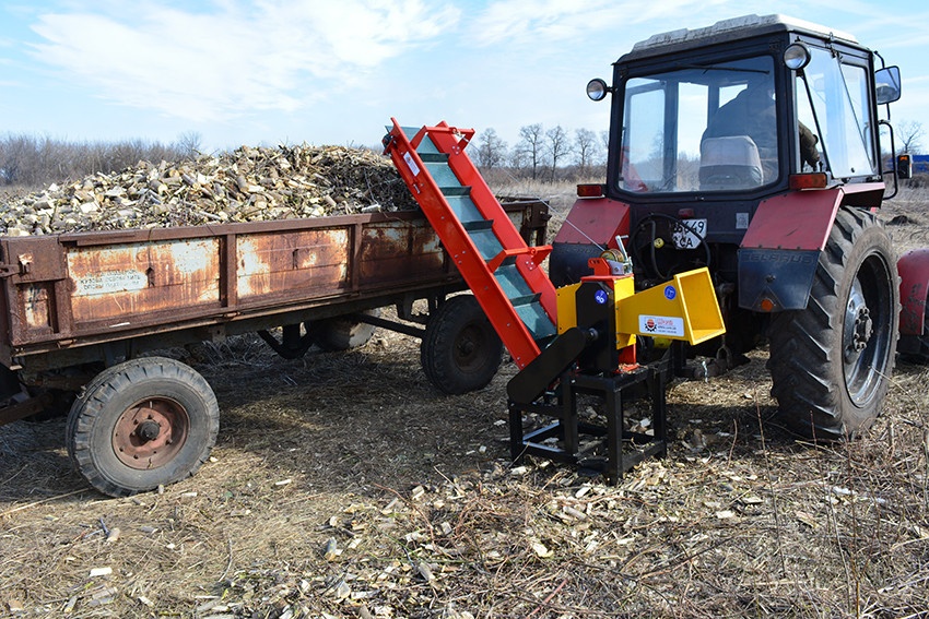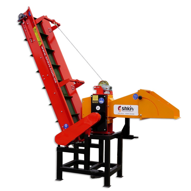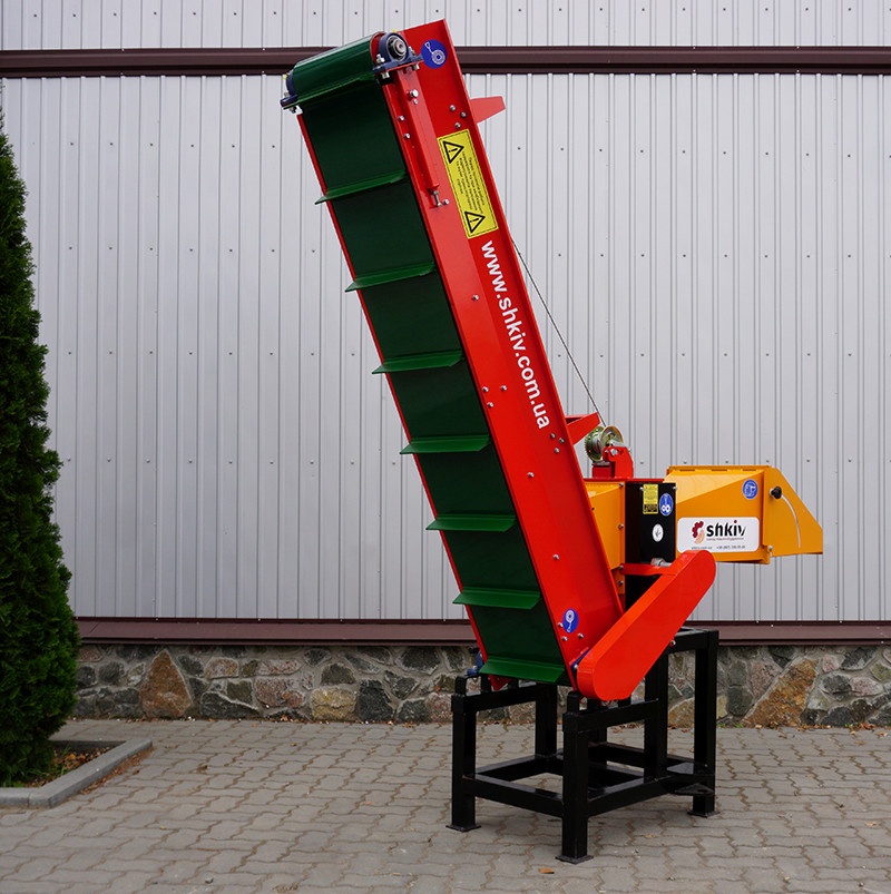 Длина конвейерной ленты 2м. Для транспортировки измельчитель оснащен жесткой фиксацией конвейерной ленты.