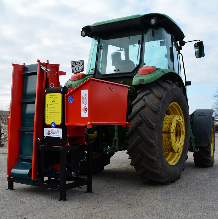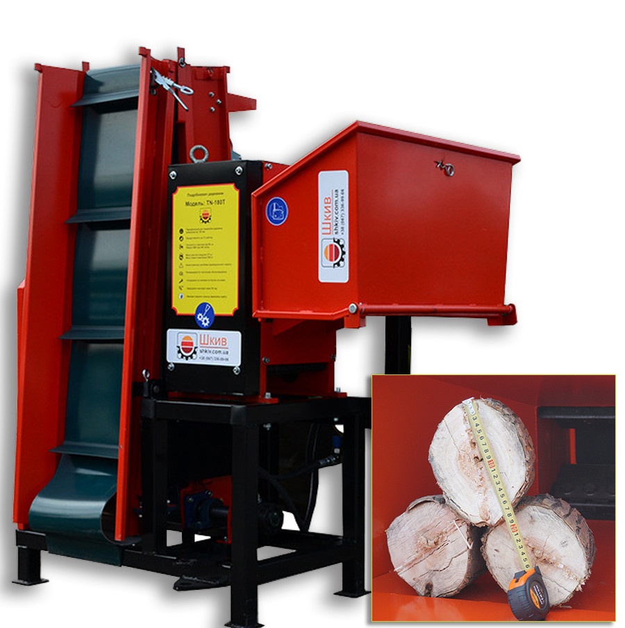 TN-180ТК3 PRO комплектуется конвейерной лентой, которая автоматизирует загрузку дров в прицеп высотой до 3м, что значительно облегчает работу и повышает производительность до 12 м3/ч готовой продукции. Благодаря внедрению привода конвейера от гидромотора стала возможна модификация конвейерной ленты по направлению хода трактора, что позволяет производить переработку веток более компактно — в одной полосе движения, что является необходимым условием в густонаселенных пунктах и на дорогах общего пользования.