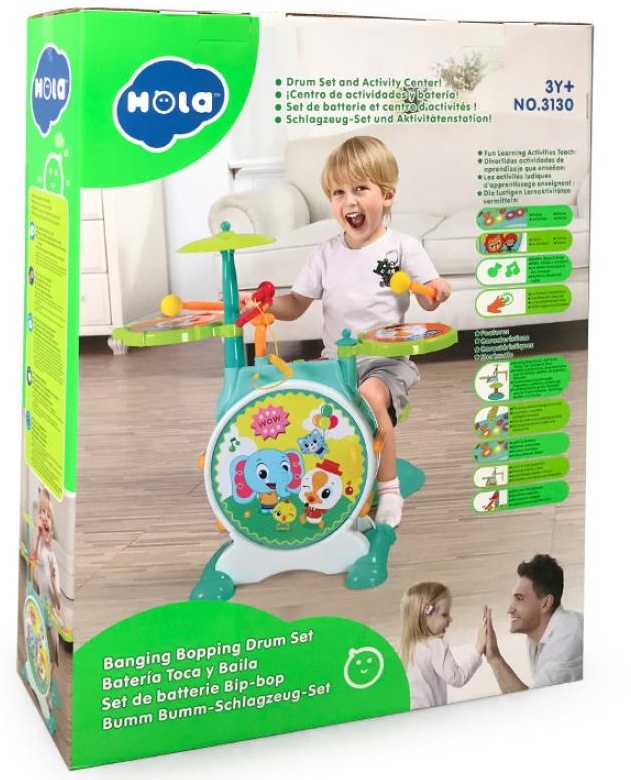 Детская барабанная установка Hola Banging Bopping поможет вашей маленькой рок-звезде мыслить и действовать творчески! Интеллектуальная ударная установка оснащена двумя малыми барабанами, бас-барабаном и тарелкой. Плюс, есть стоячий микрофон, который будет передавать их голос по комнате. Барабанный ударный барабан можно переключать между двумя режимами (Мелодия и Барабан), который позволяет вашему ребенку играть вместе с мелодиями или играть по собственному желанию. Кнопки регулировки громкости позволяют вам выключать музыку, когда вам это нужно, или поворачивать ее, чтобы раскачиваться. Музыкальные игрушки дают возможность детям отточить свой музыкальный талант, когда они играют и экспериментируют со звуком.