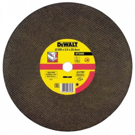 Диск Dewalt DT 3450 для монтажных пил D 28715; DW872; D 28700. Предназначен для отрезки металлических заготовок. Диаметр диска 355 мм, внутренний диаметр 25,4 мм, толщина диска 3 мм.