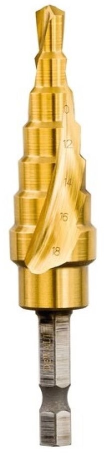 Сверло ступенчатое EXTREME IMPACT, 6-18 мм DEWALT DT5027 используется для сверления и рассверливания отверстий в конструкционной стали, черных и цветных металлов, пластмассы и тонкостенных профилей (до 3 мм). Толщина металла может быть от 4 до 34 мм.
