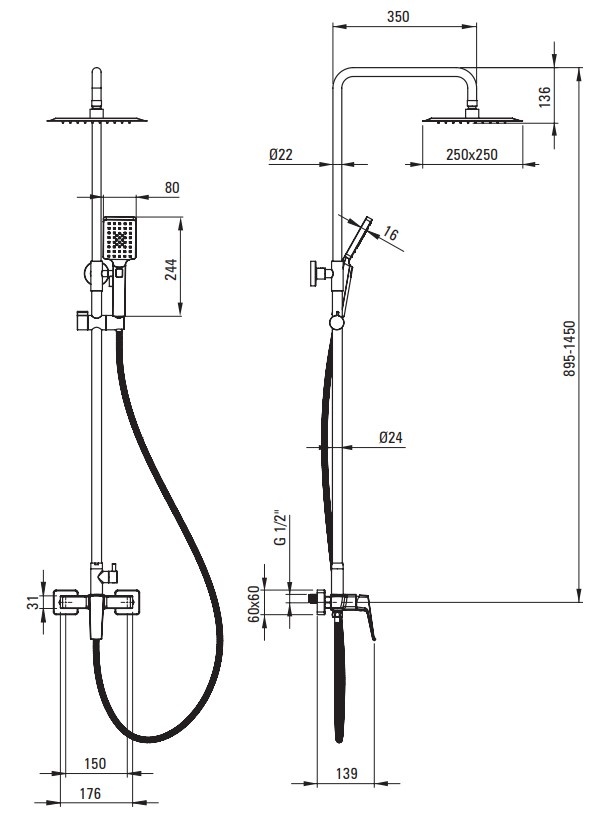 Форма верхнего душаквадратная