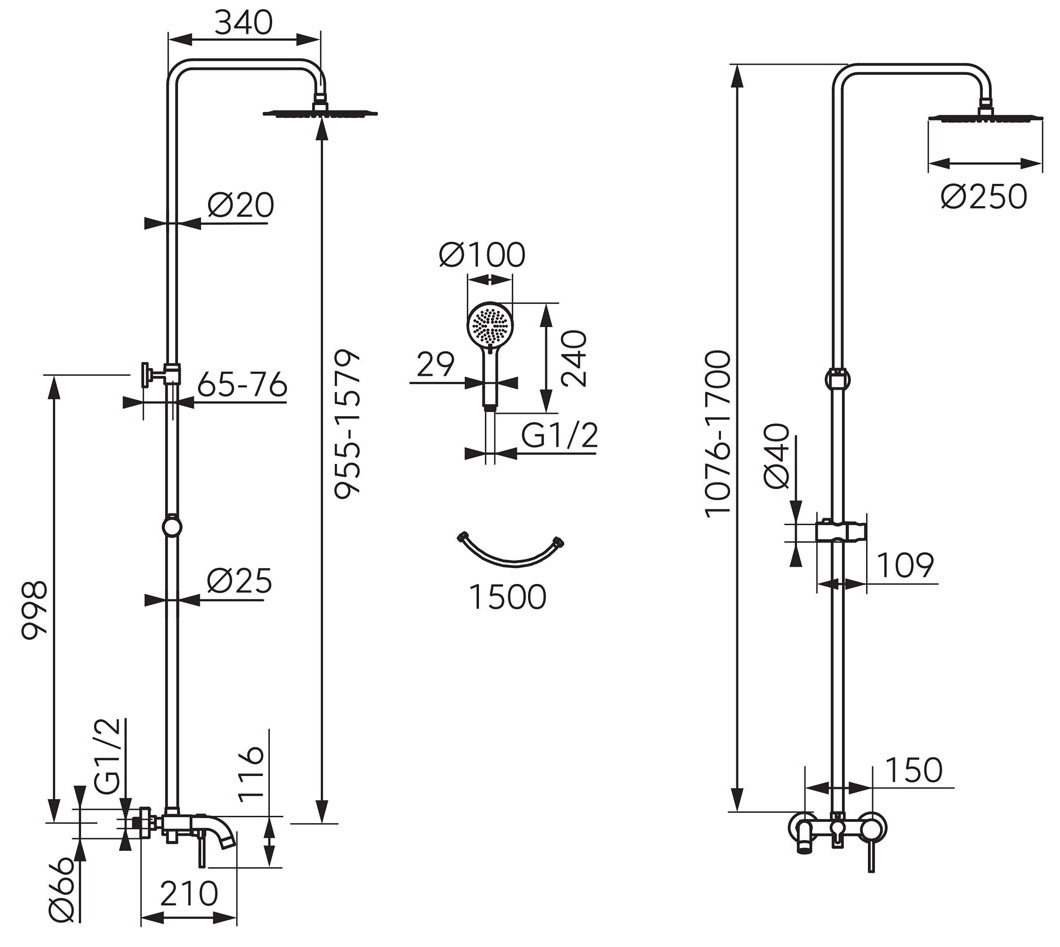 Высота1076 mm