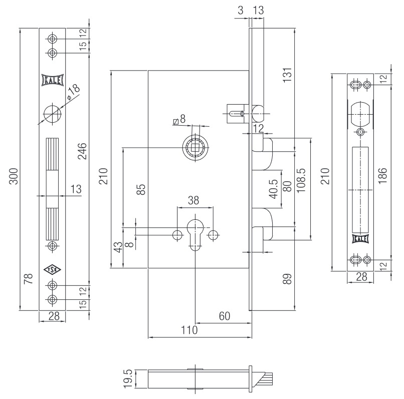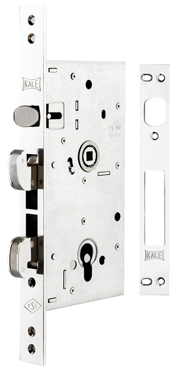 Замок врезной цилиндровый Kale-kilit (Кале-килит) 262 R с распорными противоотжимными ригелями. Рекомендован для установки в деревянные и металлические двери. Удаление ключевого отверстия 60 мм. Межосевое расстояние 85 мм. Цвет лицевой планки никель. В замок может быть установлен цилиндр европейского стандарта и ручки. Цилиндр и ручки в комплект не входят. Конструктивной особенностью данной модели являются особые распорные противоотжимные ригели крюкообразного вида. При полном вылете ригели поворачиваются вверх и вниз и фиксируются в ответной части. Это позволяет противостоять вскрытию замки при помощи отжима двери.