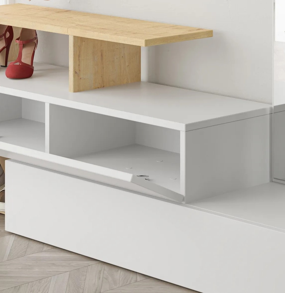 Беспорядок в прихожей останется в прошлом. Стойка оснащена множеством полок, обеспечивая удобное место для хранения пальто, шапок, шарфов и других необходимых вещей. Всё остаётся организованным и легко доступным, что упрощает ежедневную рутину.