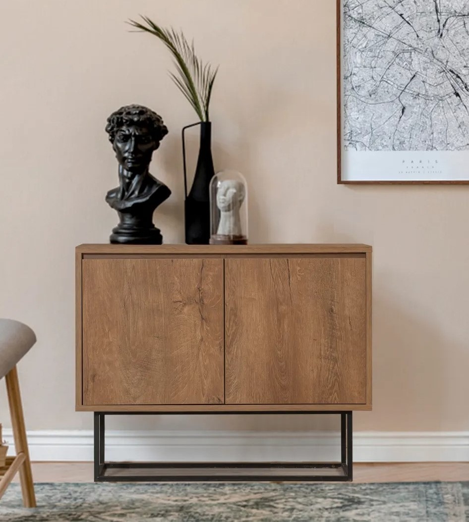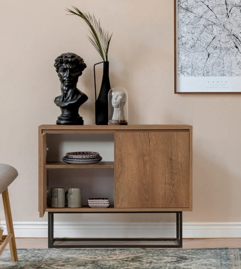 Благодаря своим продуманным размерам — 90 см в ширину, 72 см в высоту и 36 см в глубину — эта консоль предоставляет достаточно пространства для демонстрации любимых декоративных предметов или хранения необходимых вещей. Многочисленные полки и дополнительные отсеки обеспечивают удобную и эффективную организацию вашего пространства.