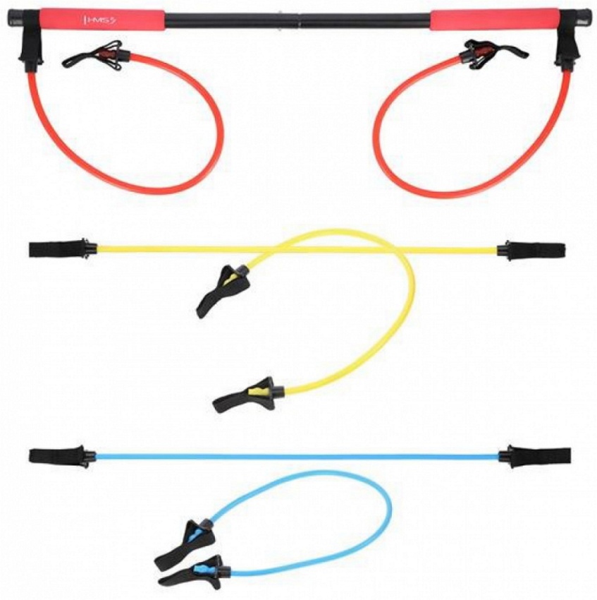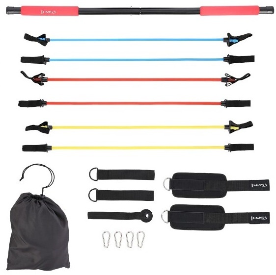 В комплект штанги для пилатеса HMS DC31 входит комплект эспандеров, дверной ограничитель и 2 пары лямок, позволяющие выполнять широкий спектр упражнений. Он может в некоторой степени заменить полосы сопротивления и тера-группы. Модель HMS DC31 можно использовать при любых тренировках и реабилитации. Штанга используется для тренировки верхних и нижних мышц. Тренировки с DC31 повышают мобильность и улучшают координацию.