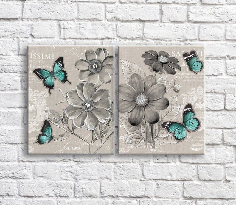 Картина ArtPoster Green butterflies and wildflowers Black and White style (3467719)