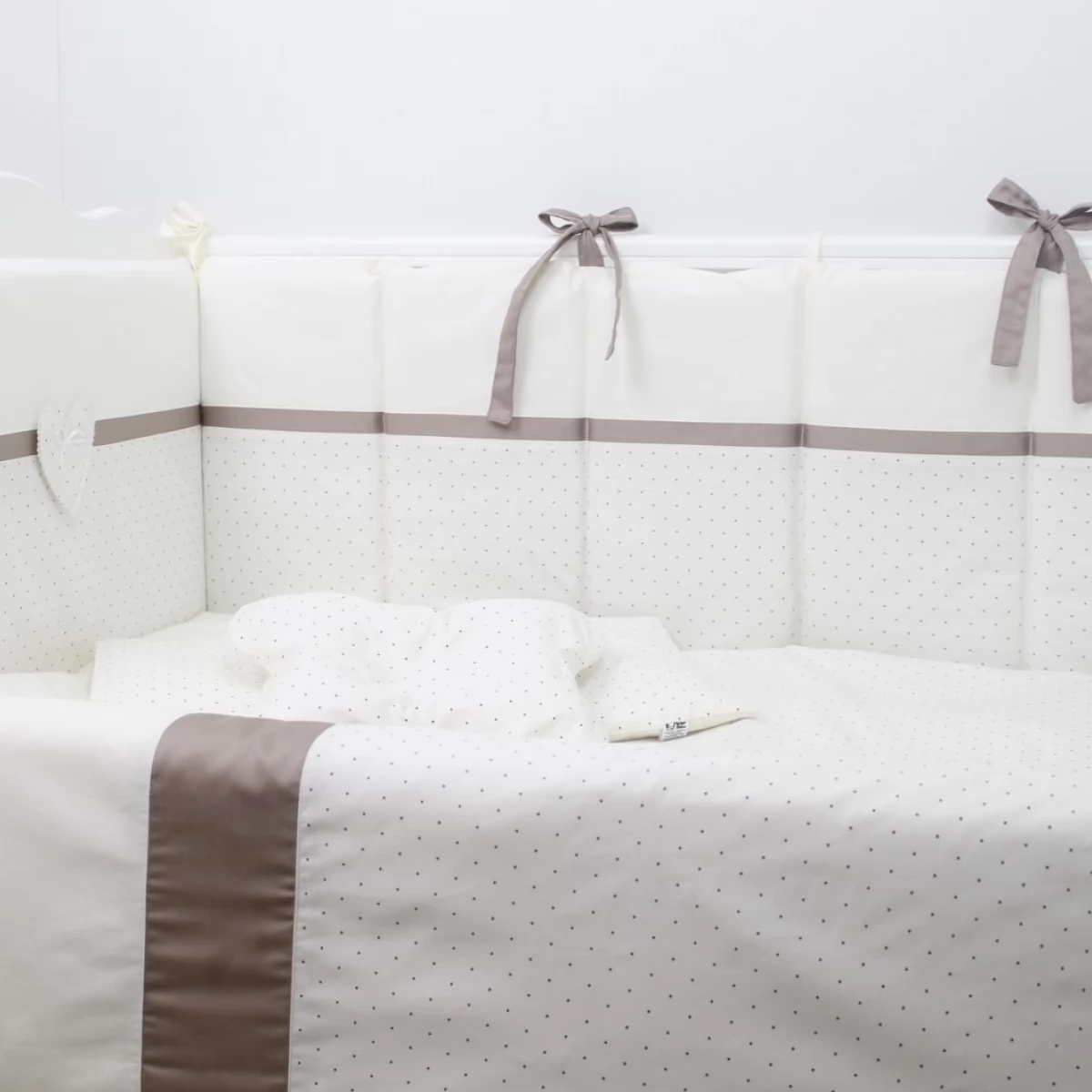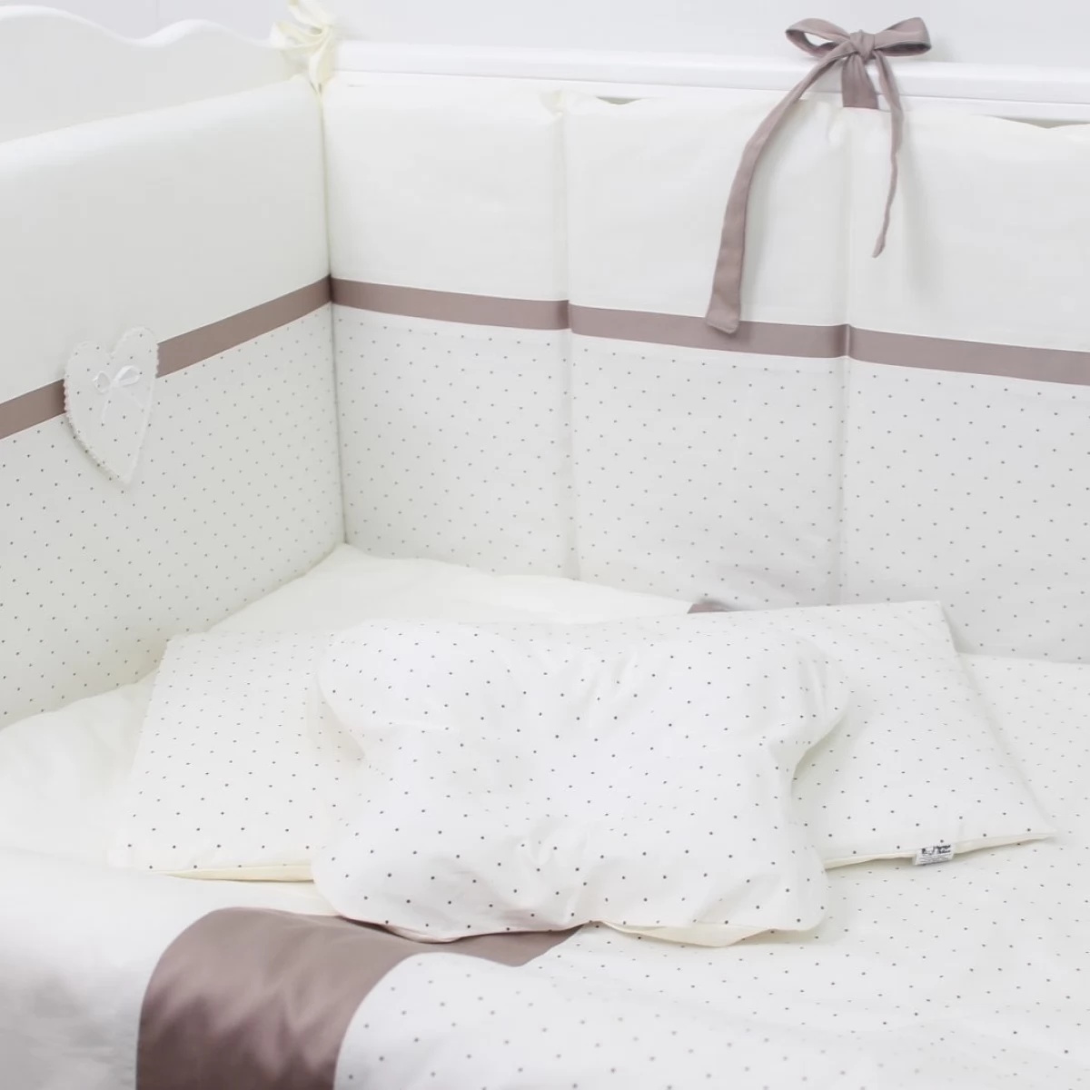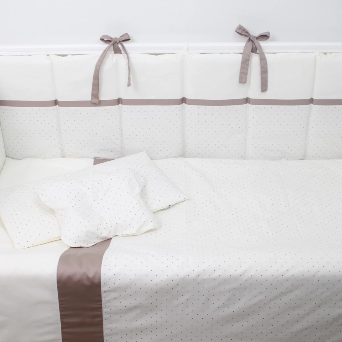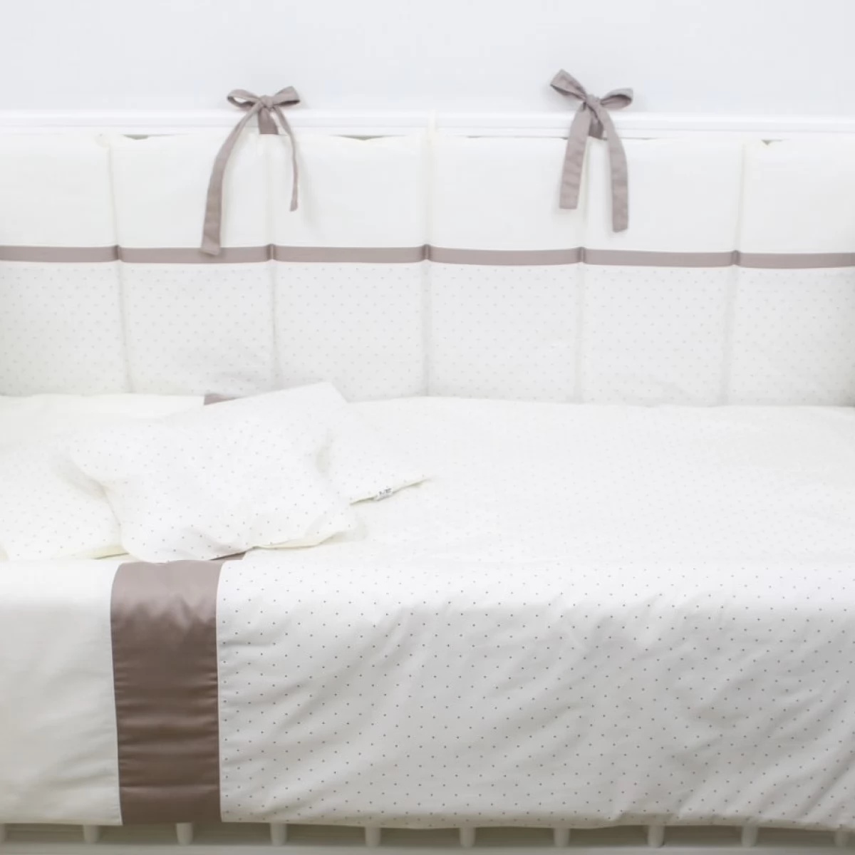 Комплект в кроватку 8 предметов из хлопка PernaMea окружит вашего малыша теплом семейного уюта. Природные оттенки и спокойные тона сатина убаюкивают перед сном. Комплект подходит для спального места 120х60 см.