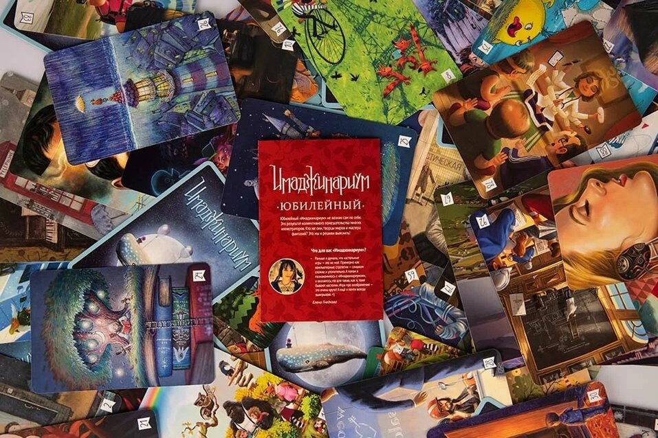 «Имаджинариум: Юбилейный. 5 лет» — это набор из 98 дополнительных карт к настольной игре на ассоциации. Когда-то они были в большом, ярко-красном издании «Имаджинариум: Юбилейный», а теперь переместились в маленькую коробочку с синими обложками карт, чтобы сочетаться с любой из версий «Имаджинариума».