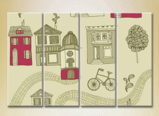 Картина Rainbow Polyptych Texture Houses and bicycles burgundy 01 (2230630)