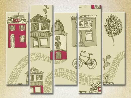 Картина Rainbow Polyptych Texture Houses and bicycles burgundy 03 (2231838)
