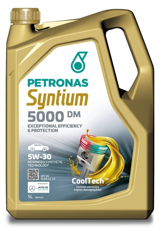 Моторное масло PETRONAS Syntium 5000 DM 5W-30 – это полностью синтетический смазочный материал, разработанный с применением технологии °CoolTech™, которая способствует эффективному регулированию тепловыделения, устойчивости к окислению и предотвращению разложения масла с образованием осадка, чтобы защитить узлы и сохранить КПД двигателя в течение всего срока замены масла.