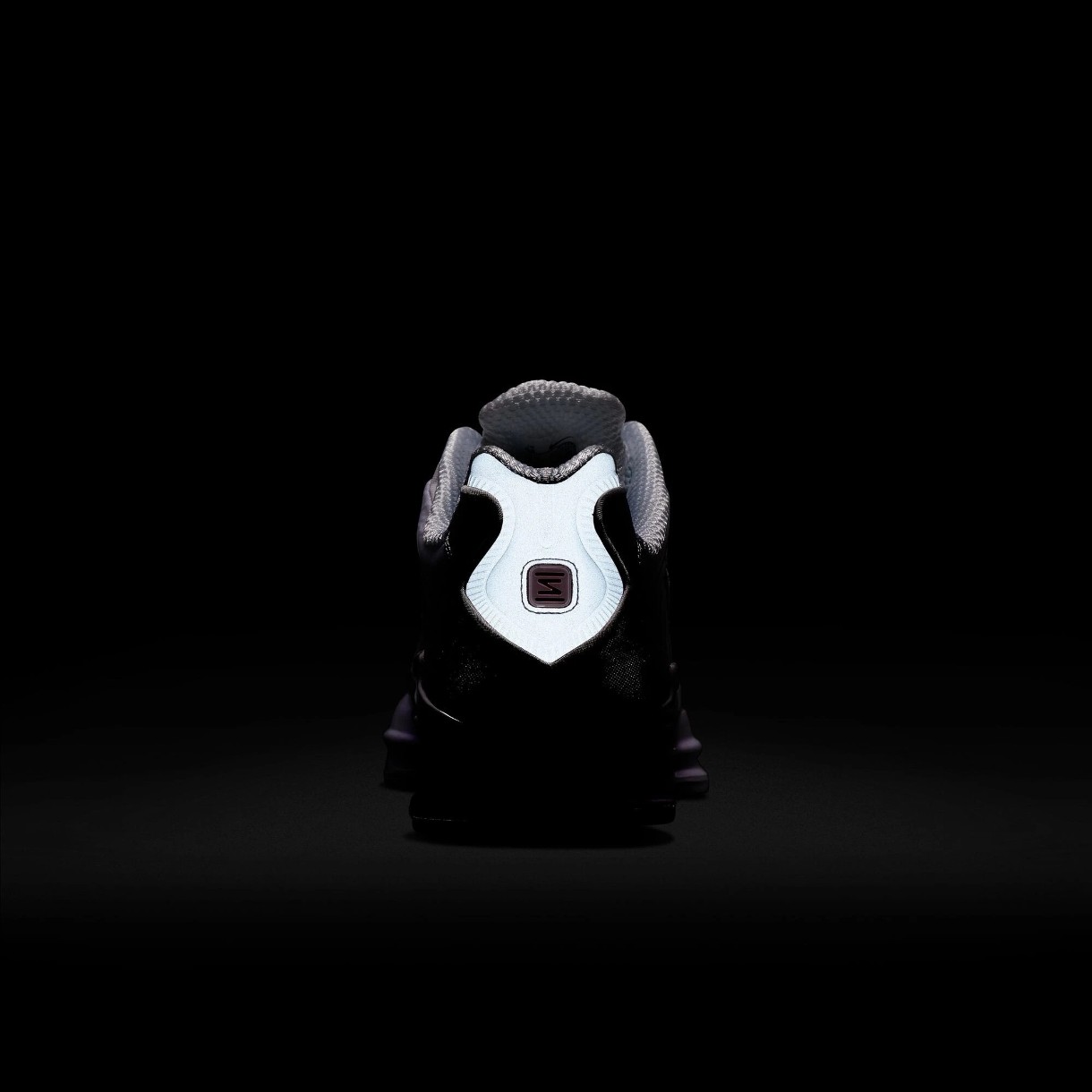 Инновационная система амортизации Nike Shox с гибкими колоннами по всей длине подошвы обеспечивает упругий шаг, эффективно смягчает удары и возвращает энергию с каждым движением. Специальная TPU-пластина в пятке добавляет устойчивости, обеспечивая комфорт и уверенность в любой ситуации. Эстетику и поддержку дополняют формованные накладки из TPU, которые фиксируют стопу и подчёркивают технологичный, футуристичный образ модели.