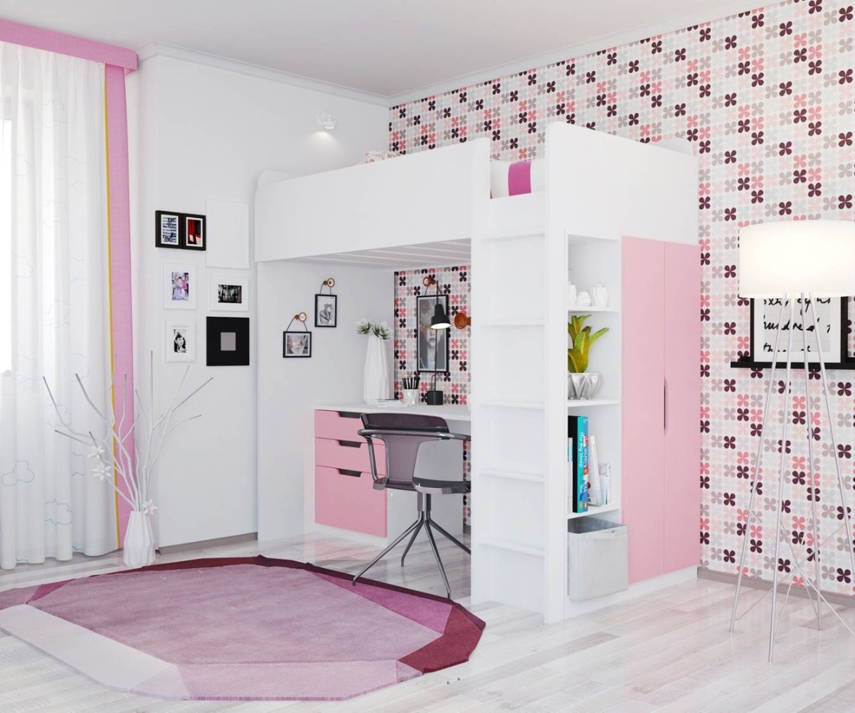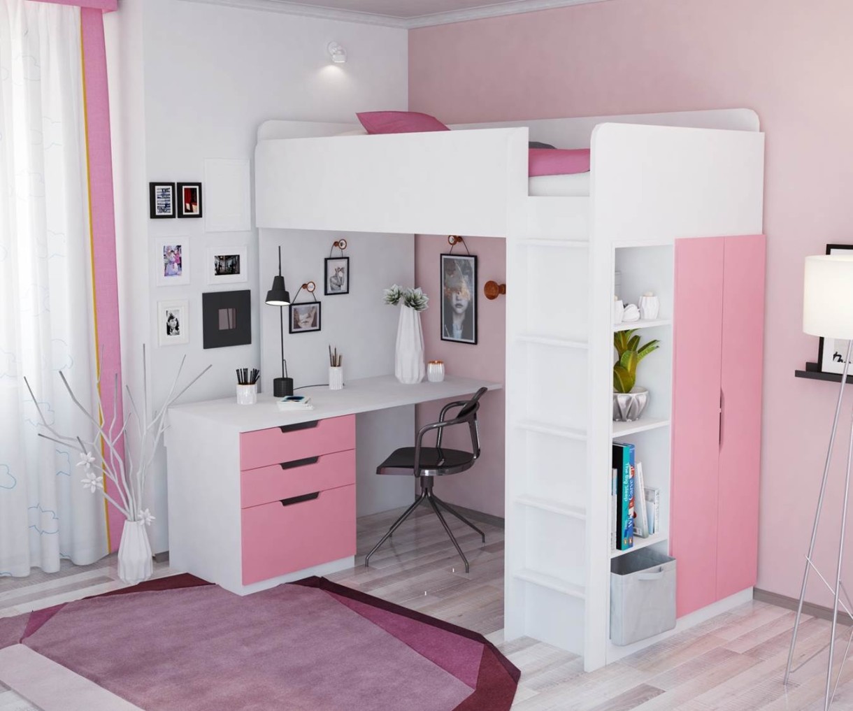 Детский гарнитур Polini Kids Simple с письменным столом и шкафом Белый/Роза