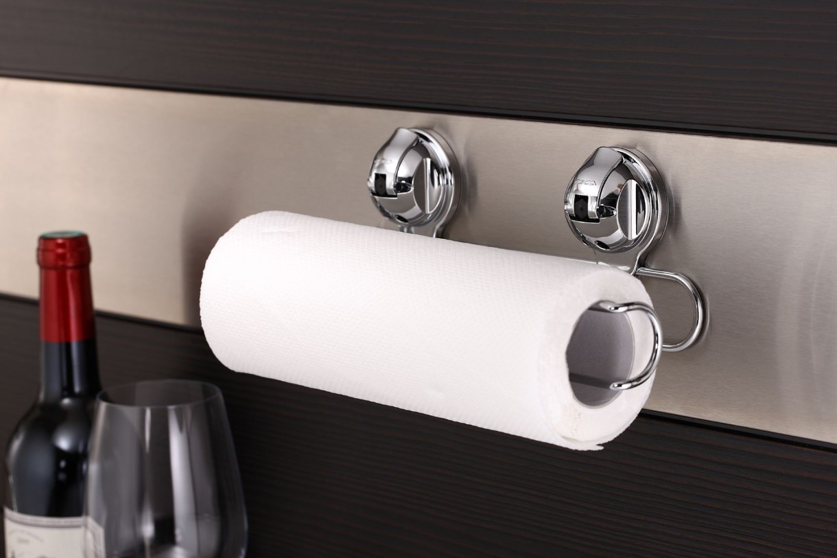 Нержавеющая сталь позволяет использовать держатель в помещениях с высокой влажностью, а наличие вакуумных присосок, значительно упрощает его установку.