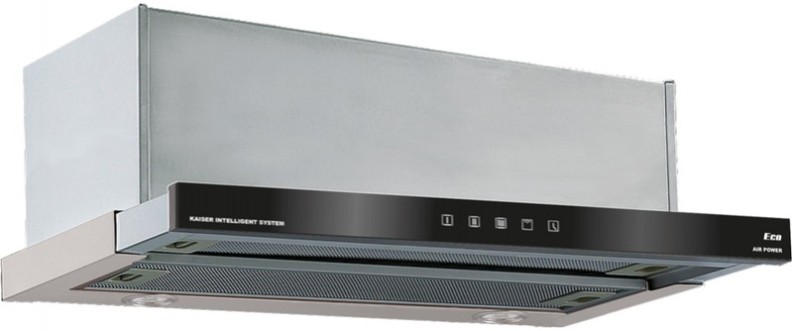 Вытяжка EA 644 Eco встраивается в шкаф, особенность модели — выдвижная панель c сенсорной панелью управления Full touch и LСD дисплеем. Прикосновением к сенсору включается одна из трех скоростей, зажигается светодиодное освещение, устанавливается работа таймера.