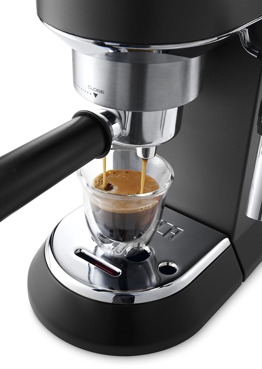 Вы ценитель выпить чашечку-другую кофе в маленьких порциях, оттопырив аристократически пальчик? Или же, напротив, любите наслаждаться любимым вкусом из большого стакана, укутавшись в плед и болтая по телефону с друзьями? С кофеваркой DeLonghi EC 685 BK каждый получит то, что желает, ведь она оснащена съемной подставкой. К примеру, если вы хотите большую порцию кофе, просто извлеките подставку и поместите на ей место свою чашку.