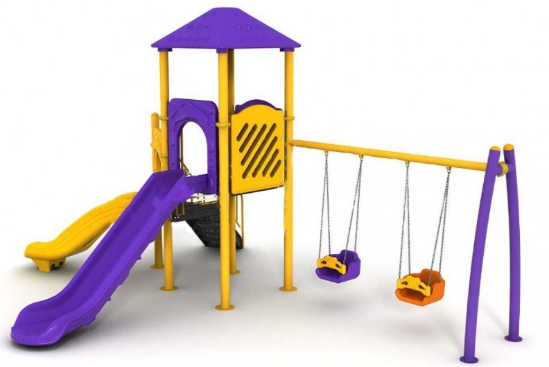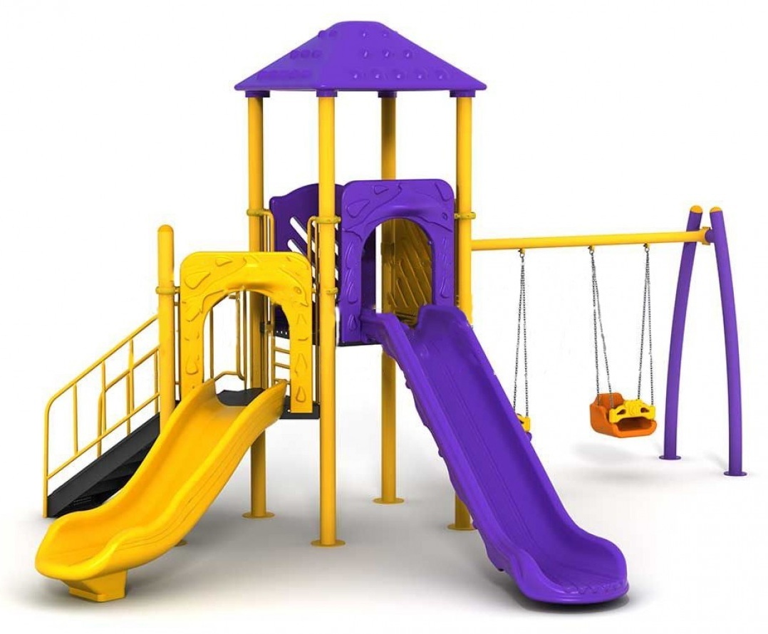 Базовая комплектация: лестница с поручнями, Башня - PALACE (высота от земли 1500 мм), Башня- LODGE (высота от земли 1000 мм), две прямые горки, качели двойные.