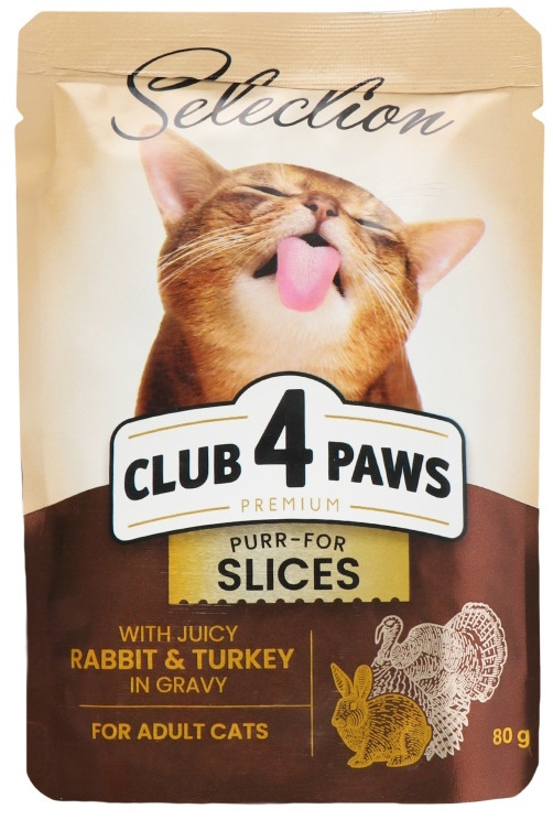 Влажный корм для кошек Club 4 Paws Selection Slices Rabbit & Turkey 0.08kg 12pcs