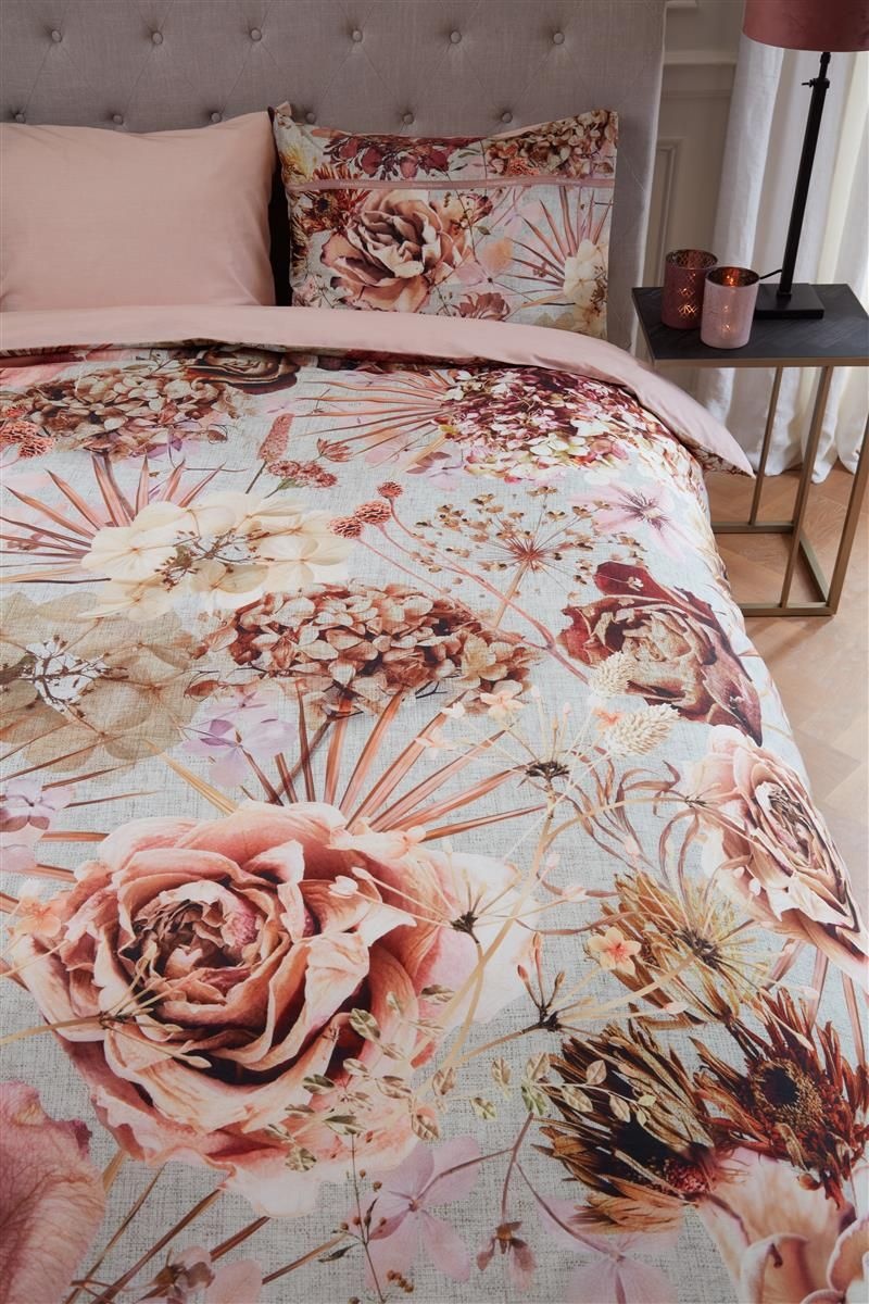 Пододеяльник Faded Flower украшен цифровым принтом насыщенных цветных сухоцветов на очень мягком хлопке. Благодаря технике цифровой печати цветы очень реалистичны, создавая ощущение, будто вы просыпаетесь в постели, полной цветов. Цвета розовый, нежно-розовый, лососевый, старый розовый, зеленый, кремовый и белый оживляют цветы и придают дизайну романтический вид. Пододеяльник имеет мягкую структурированную основу из принтованного льна. Фирменный знак Rivièra Maison тонко воплощен в тонкой полоске, нанесенной на верхнюю часть наволочек. Обратная сторона пододеяльника однотонная светло-розового цвета.
