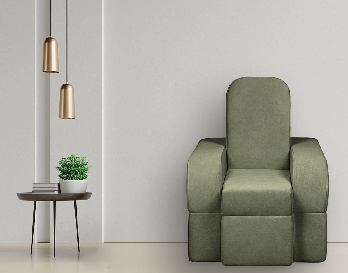 Лёгким движением кресло раздвигается в удлиненное кресло, а затем в просторную кровать.