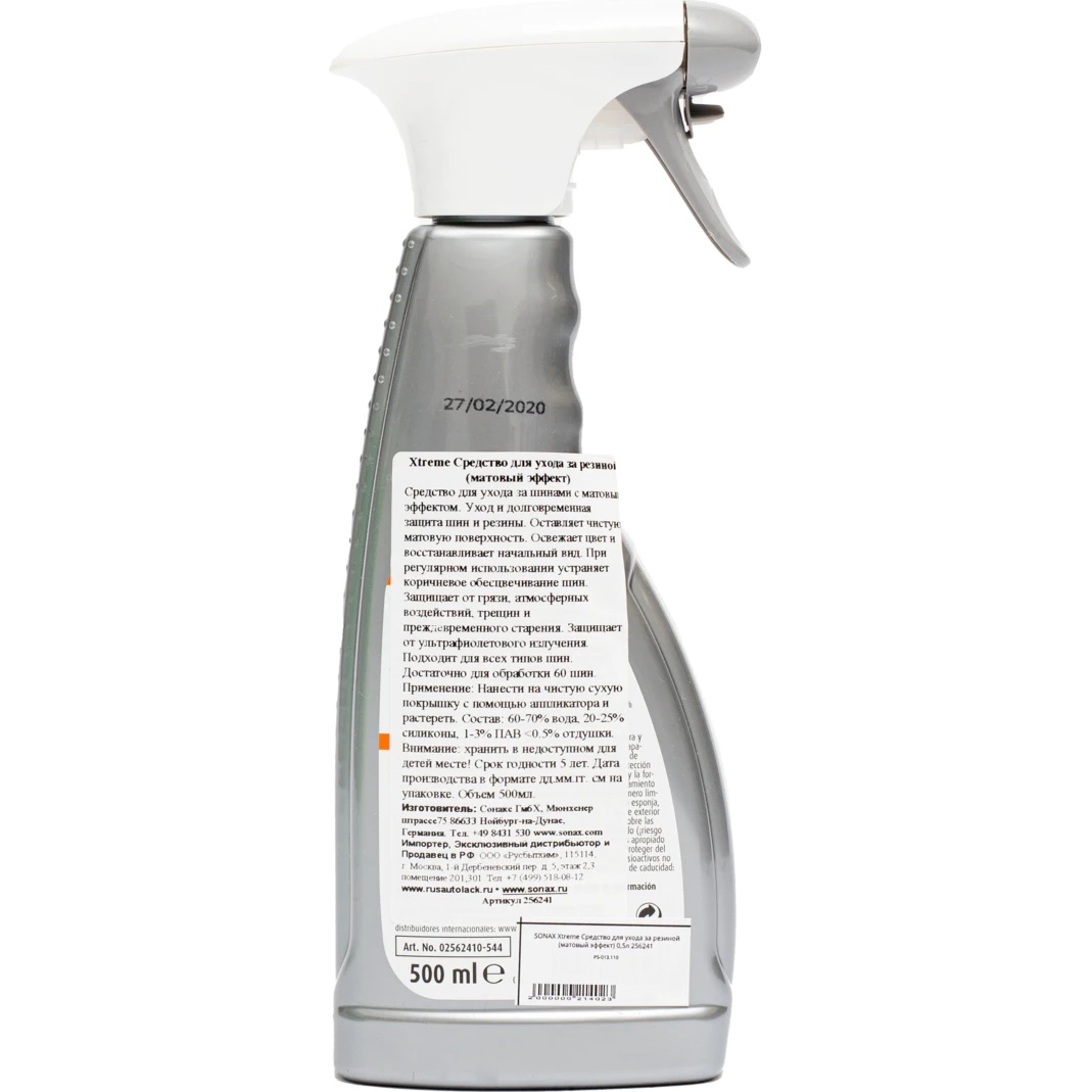 Профессиональное средство с матовым эффектом в форме спрея, предназначенное для комплексного ухода за шинами автомобиля. Обеспечивает идеальную очистку поверхностей шин от различных загрязнений, в том числе удаляет пыль с микротрещин – оставляет после себя чистую поверхность. Освежает внешний вид покрышки, придает насыщенность черному цвету, а при регулярном применении нейтрализует коричневую обесцвечивание шин.