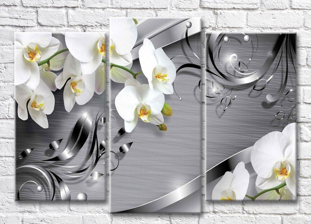 Картина Magic Color White orchids and steel patterns on a Gray background (3565195)