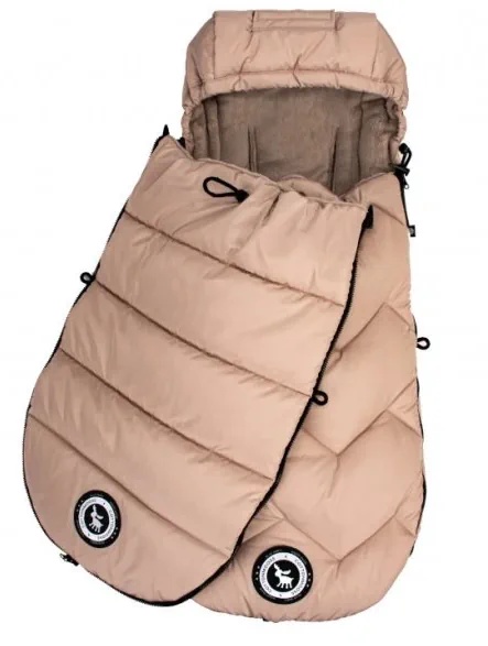 Капюшон спального мешка глубокий, регулируемый и профилированный, поэтому его можно легко подогнать под голову ребенка, плотно укутав его. Дополнительно капюшон можно свернуть и прикрепить к спинке коляски. Благодаря отверстию в верхней части капюшона можно регулировать высоту спинки, не снимая свернутый капюшон. Капюшон имеет шнурок, позволяющий регулировать его. На передней части спального мешка имеются завязки, позволяющие затянуть их и точнее укутать тело. Внизу использованы широкие складки, обеспечивающие дополнительное пространство для обуви, а специальная подкладка обеспечивает защиту от загрязнения обуви.