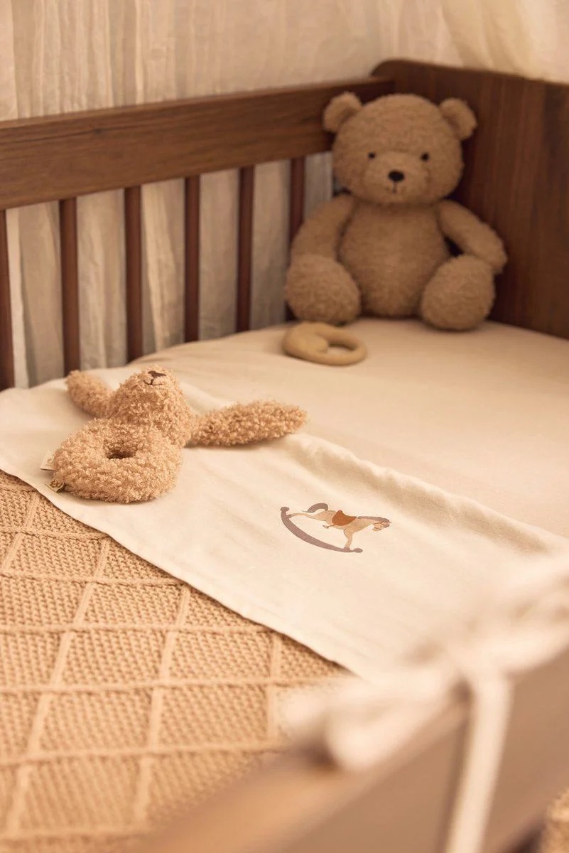Добавьте нежности и уюта в детскую комнату с простынёй из коллекции Nostalgic Ride. Этот очаровательный вариант в тёплом оттенке Ivory украшен утончённым принтом с изображением лошадки на загнутом крае.