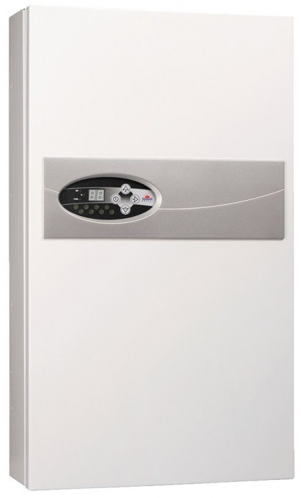 Панель управления обеспечивает установку и просмотр рабочих параметров котла. Осуществляет автоматический выбор режима мощности, что существенно влияет на экономию потребления электроэнергии. Обеспечивает регулировку температуры теплоносителя в диапазоне от 20 до 85 ºC. Узел мощности состоит из электронных полупроводниковых элементов включения, обеспечивает надежную и безшумную работу котла. Термический выключатель — выключает электропитание в случае возникновения аварийной ситуации. Предохраняет нагревательный узел и электронные элементы котла от выхода из строя.