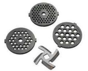 Корпус устройства выполнен из серебристого пластика, а лоток для загрузки продуктов из нержавеющей стали. В комплекте с мясорубкой Esperanza EKM012E есть 3 перфорированных диска для фарша крупного, среднего и мелкого помола (2,7 мм, 4 мм, 8 мм). Каждый диск предназначен для приготовления определенного фарша: чем мягче мясо, тем крупнее отверстия используются в процессе работы.